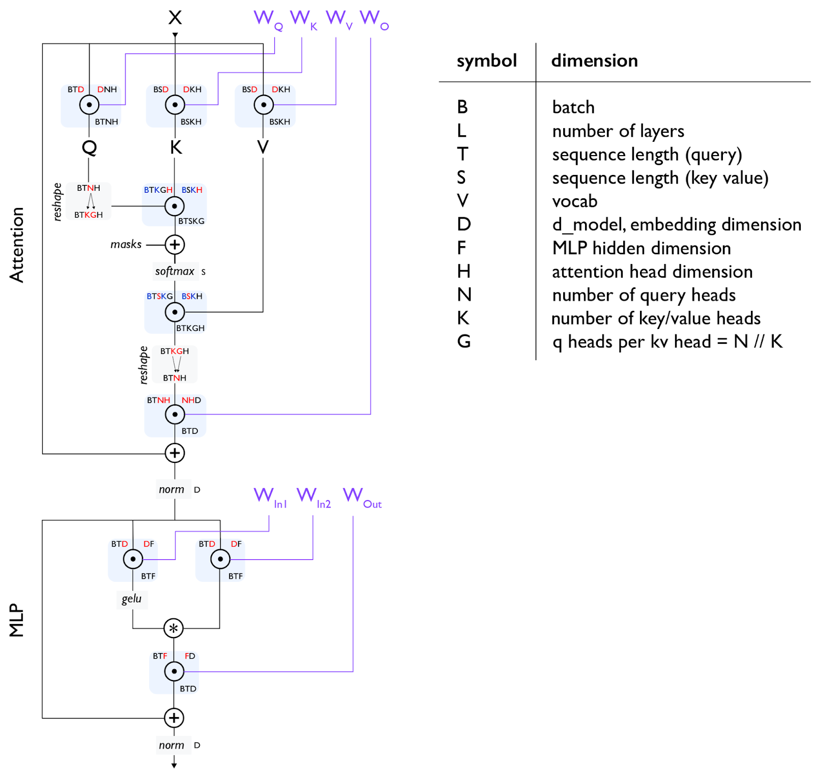 需要什么基础? 你得大概知道 LLM 和 Transformer 是啥,但不需要了解它们怎么在大规模下运行。最好对 JAX 有点了解(不是必须)。想补课的话,可以看看这篇图解 Transformer 和原始论文。更多资料见延伸阅读。