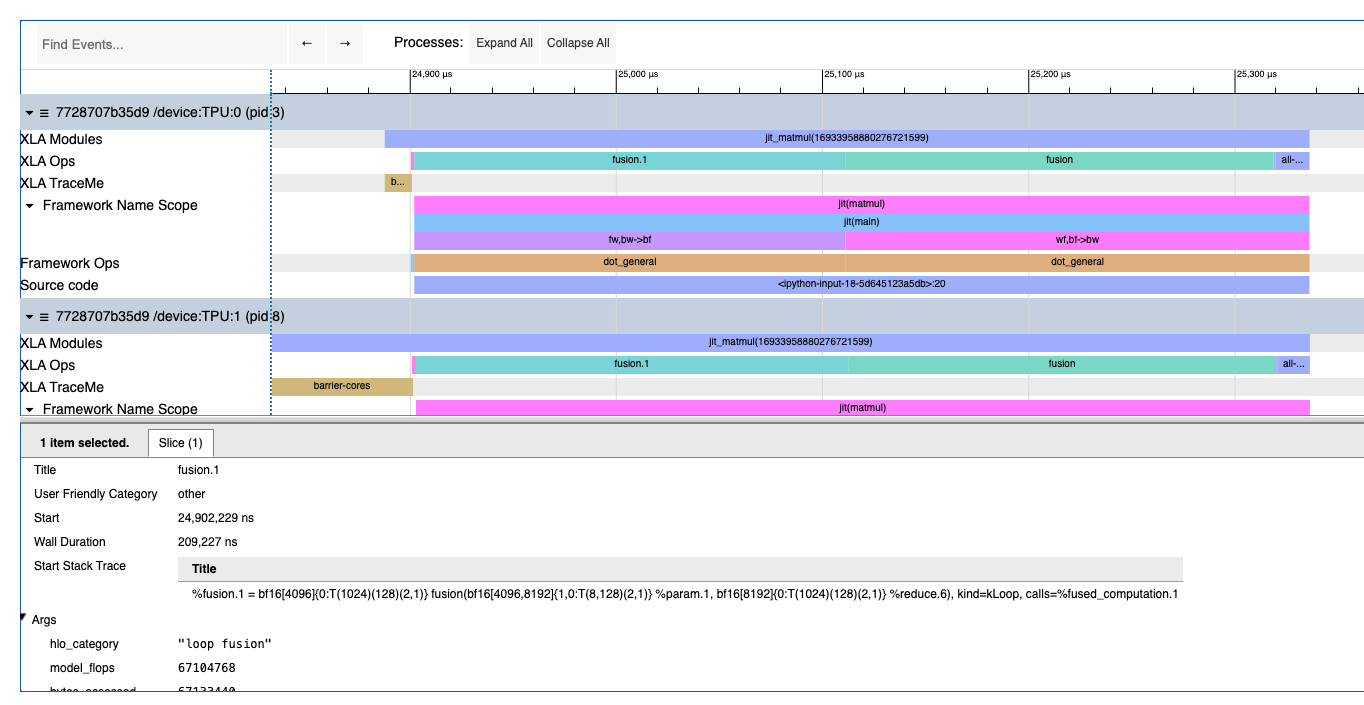 Profile 里可以看到:reduce → 两个大 fusion → all-reduce