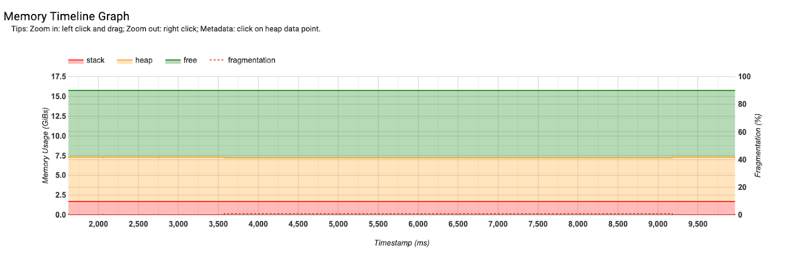 这个视图显示内存使用随时间的变化。