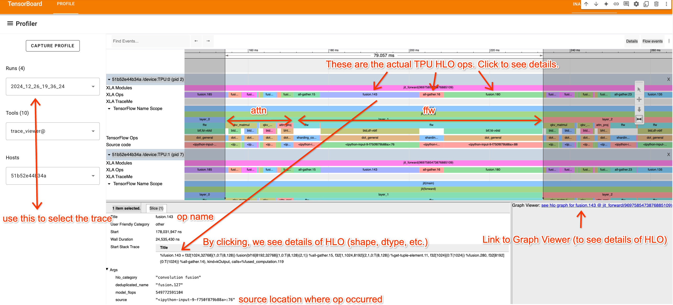 多盯着看几遍,试着把 HLO 操作和你的代码对应起来。